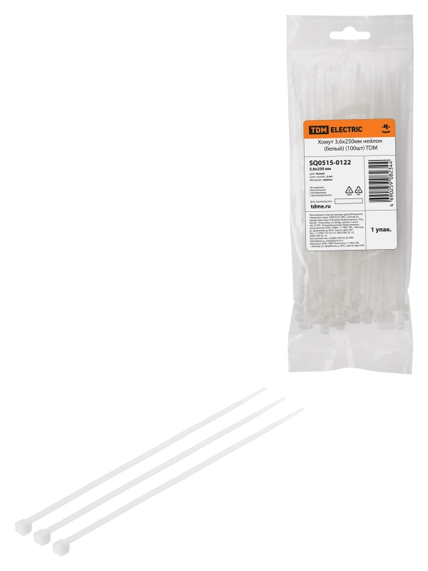 Хомут 3,6х250мм нейлон (белый) (100шт) TDM