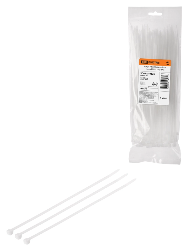 Хомут 7,6х350мм нейлон (белый) (100шт) TDM