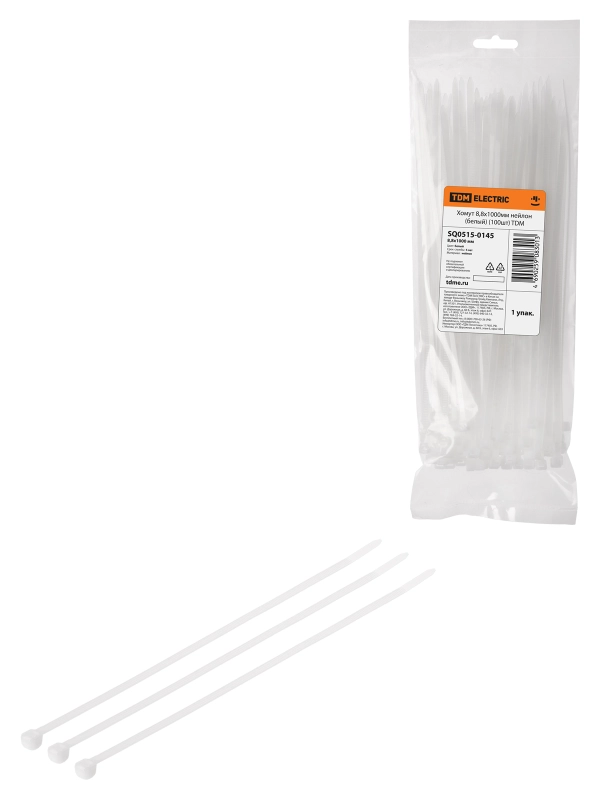 Хомут 8,8х1000мм нейлон (белый) (100шт) TDM