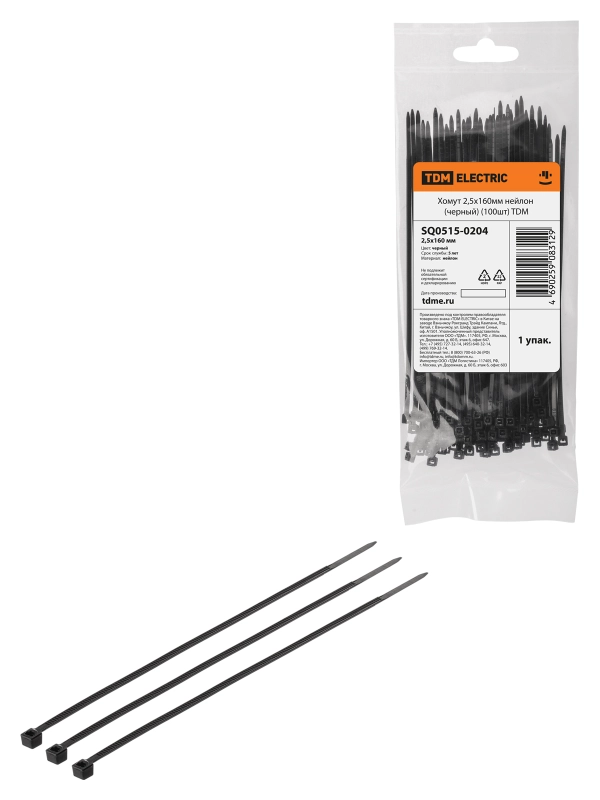 Хомут 2,5х160мм нейлон (черный) (100шт) TDM