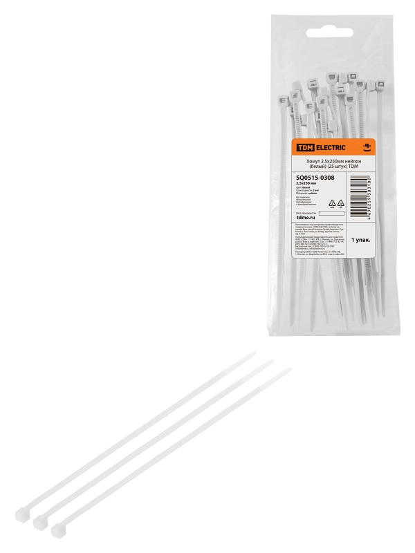 Хомут 2,5х250мм нейлон (белый) (25 штук) TDM