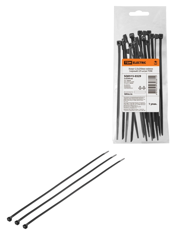 Хомут 2,5х250мм нейлон (черный) (25 штук) TDM