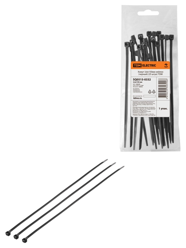 Хомут 3,6х150мм нейлон (черный) (25 штук) TDM