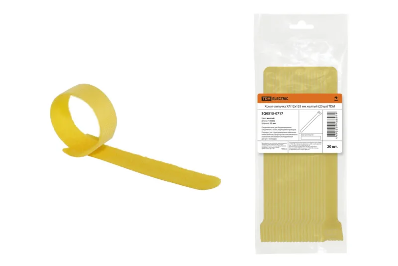 Хомут-липучка ХЛ 12х135 мм желтый (20 шт) TDM
