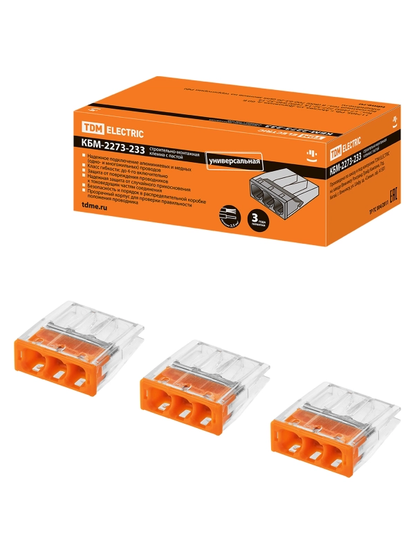 Строительно-монтажная клемма КБМ-2273-233 (2,5мм2) с пастой TDM