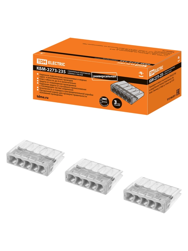 Строительно-монтажная клемма КБМ-2273-235 (2,5мм2) с пастой TDM