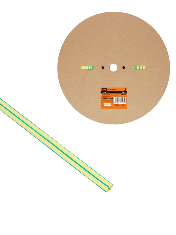 Термоусаживаемая трубка ТУТнг 6/3 желто-зеленая (100 м/ролл) TDM