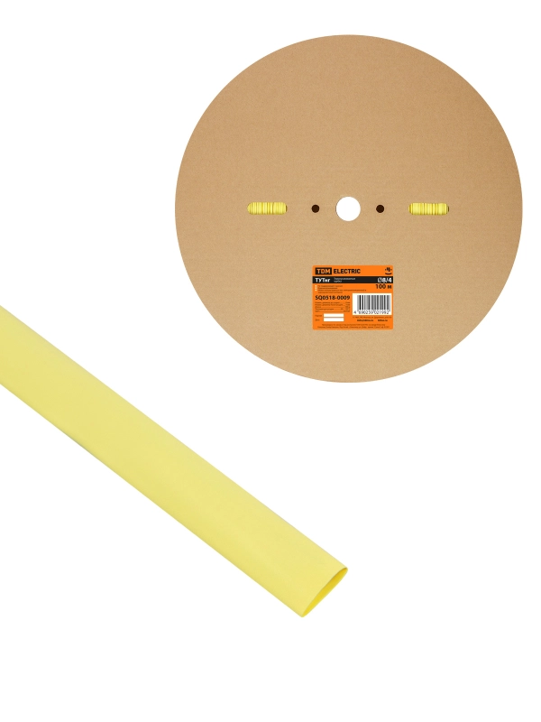 Термоусаживаемая трубка ТУТнг 8/4 желтая (100 м/ролл) TDM