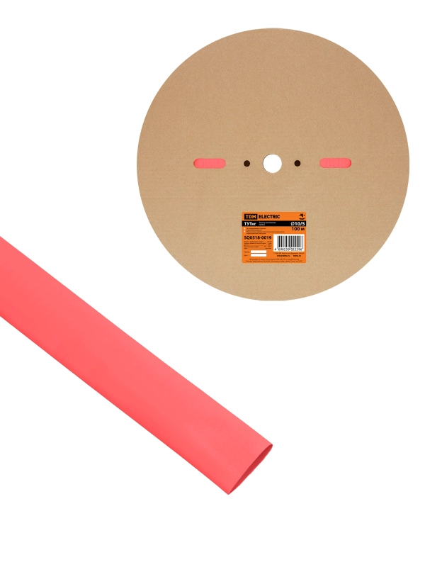 Термоусаживаемая трубка ТУТнг 10/5 красная (100 м/ролл) TDM