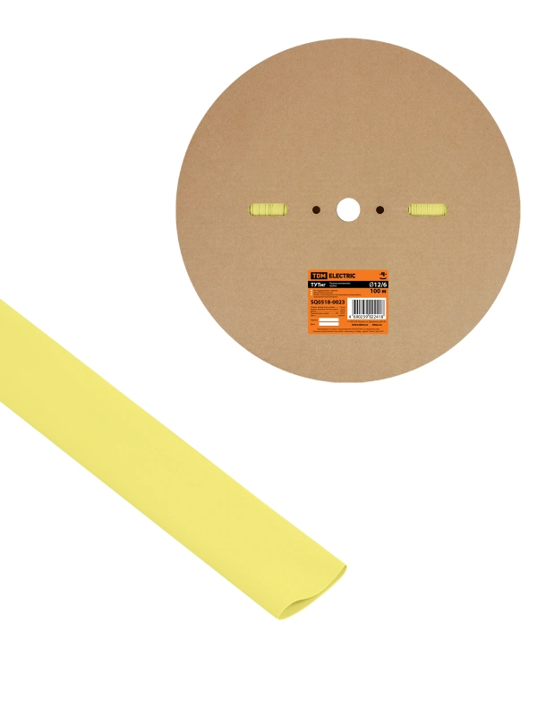 Термоусаживаемая трубка ТУТнг 12/6 желтая (100 м/ролл) TDM