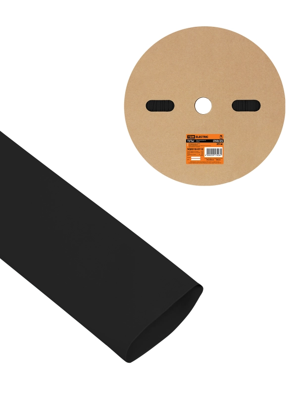 Термоусаживаемая трубка ТУТнг 50/25 черная (25 м/ролл) TDM