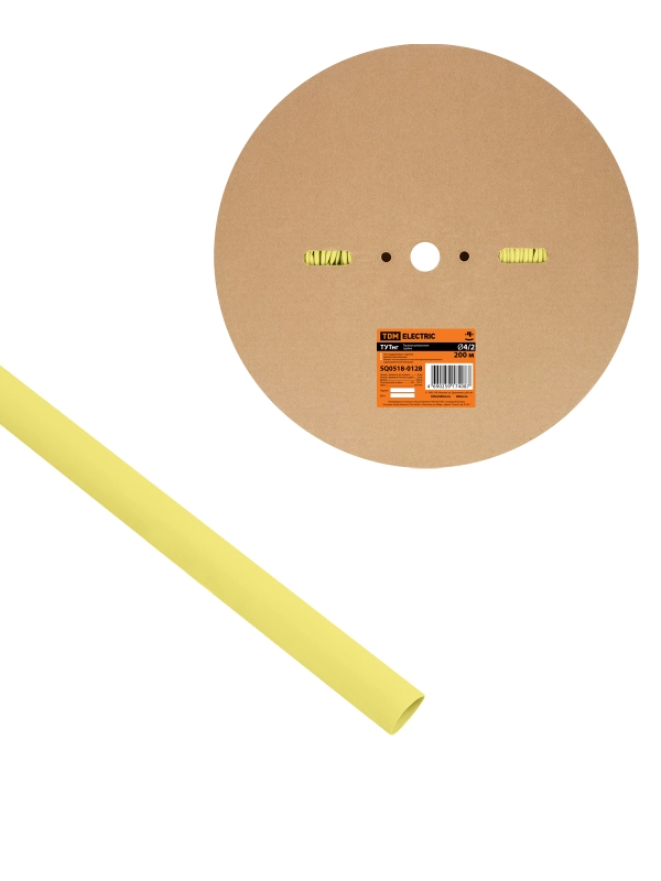 Термоусаживаемая трубка ТУТнг 4/2 желтая (200 м/ролл) TDM