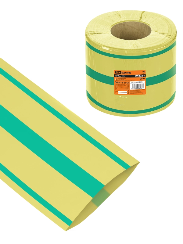 Термоусаживаемая трубка ТУТнг 100/50 желто-зеленая (25 м/ролл) TDM