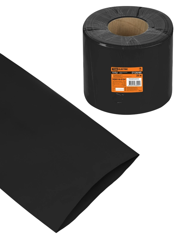 Термоусаживаемая трубка ТУТнг 120/60 черная (25 м/ролл) TDM