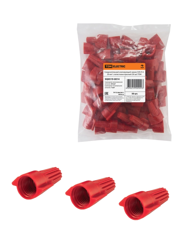 Соединительный изолирующий зажим СИЗ-Л-4 20 мм2 с лепестками красный (50 шт) TDM