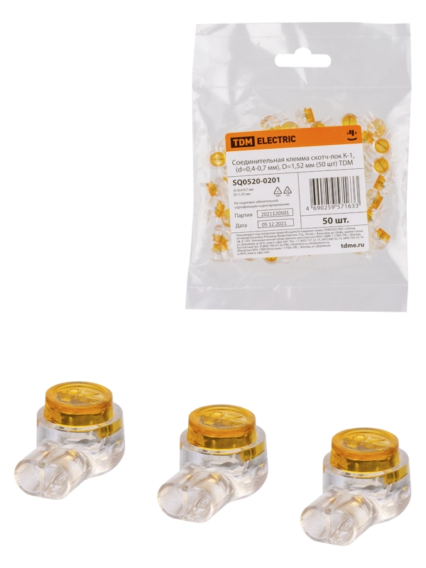 Соединительная клемма скотч-лок К-1, (d=0,4-0,7 мм), D=1,52 мм (50 шт) TDM