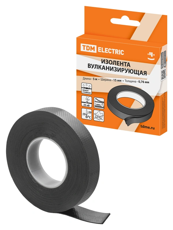 Изолента вулканизирующая 15 мм 5 метров (до 25 кВ) TDM