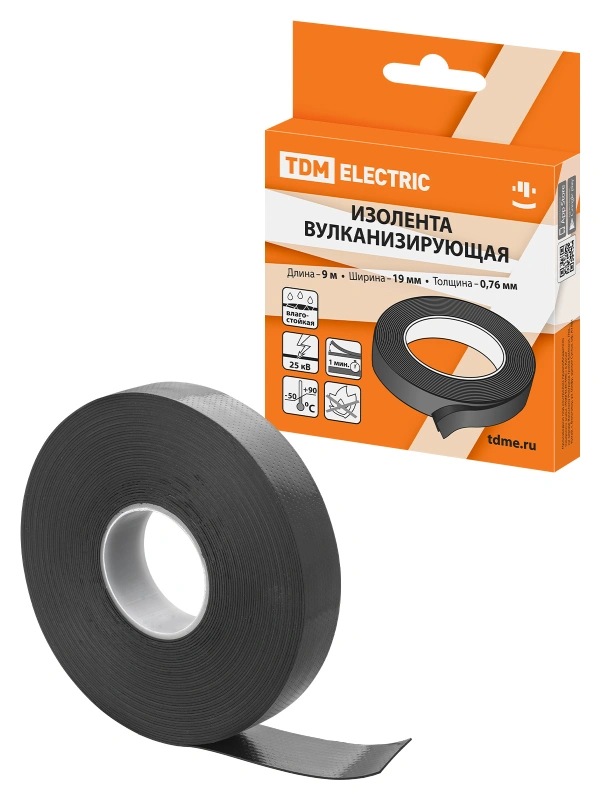 Изолента вулканизирующая 19 мм 9 метров (до 25 кВ) TDM