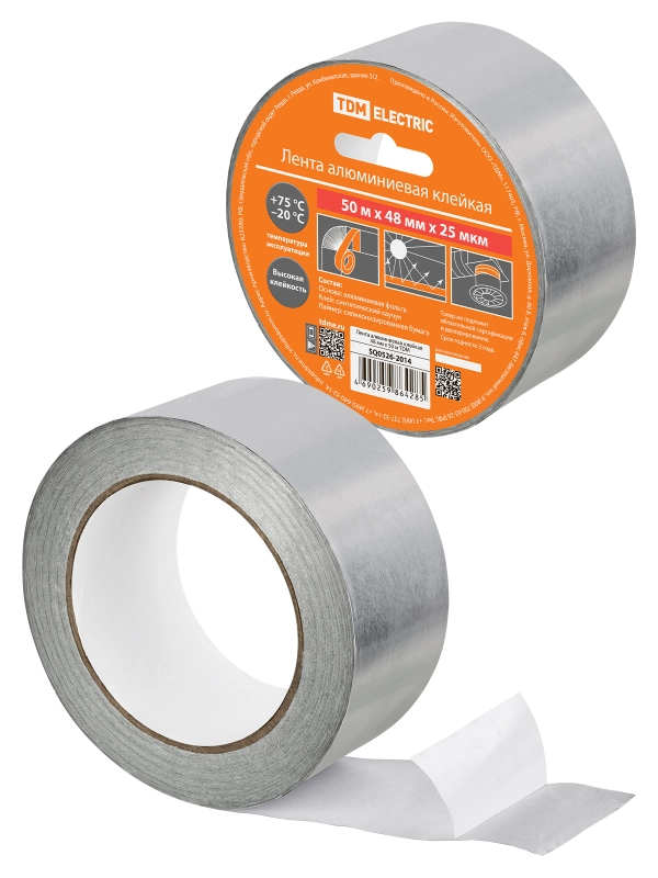Лента алюминиевая клейкая 48 мм х 50 м TDM