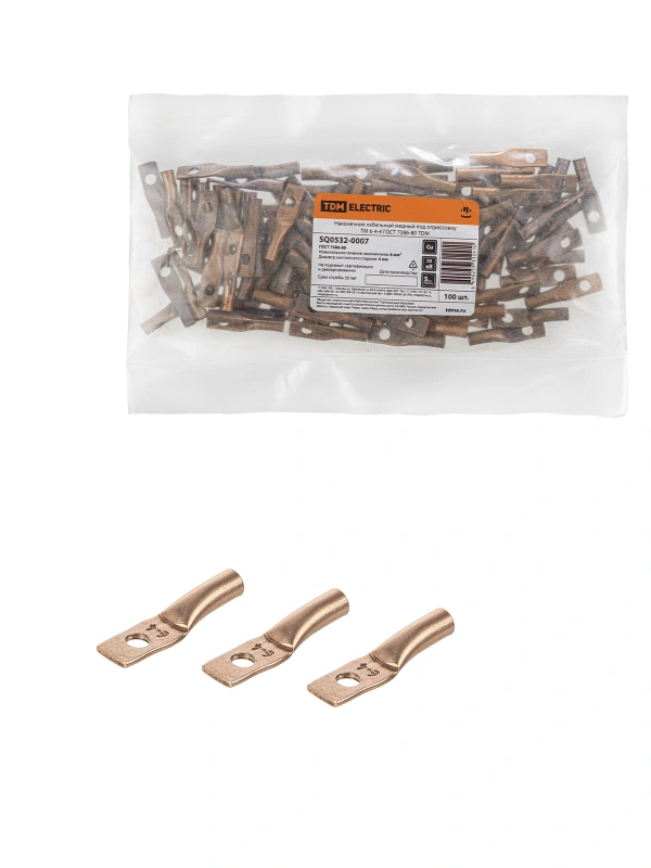 Наконечник кабельный медный под опрессовку ТМ 6-4-4 ГОСТ 7386-80 TDM