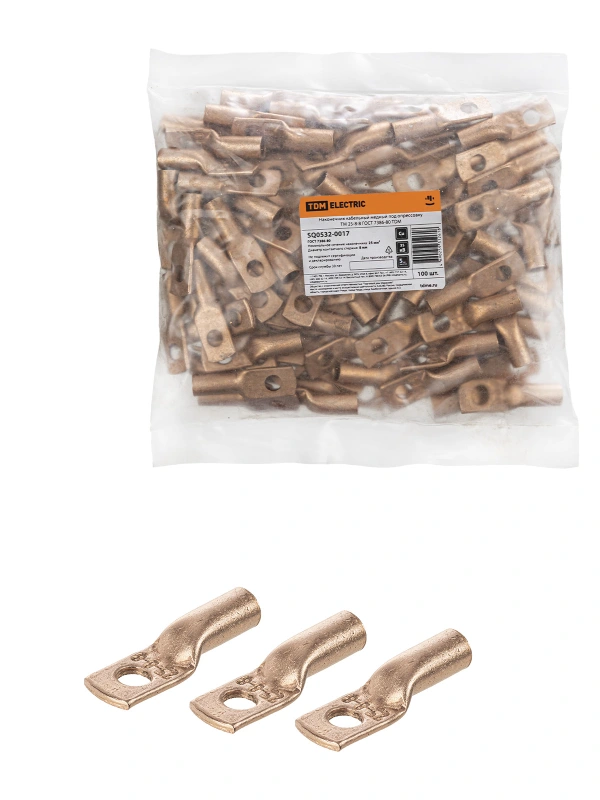 Наконечник кабельный медный под опрессовку ТМ 25-8-8 ГОСТ 7386-80 TDM