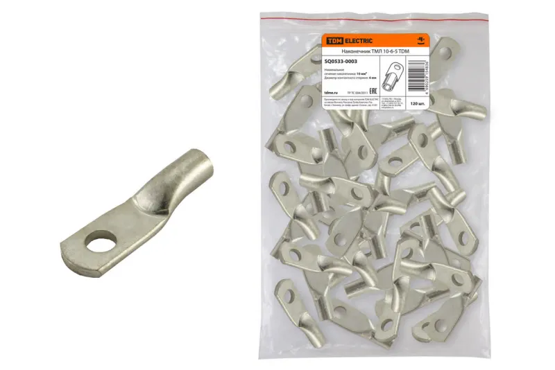 Наконечник кабельный медный луженый под опрессовку ТМЛ 10-6-5 ГОСТ 7386-80 TDM