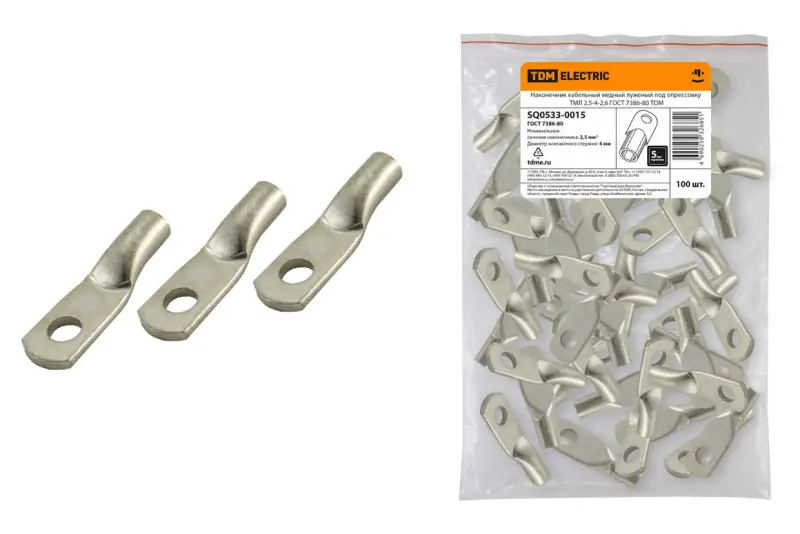 Наконечник кабельный медный луженый под опрессовку ТМЛ 2,5-4-2,6 ГОСТ 7386-80 TDM