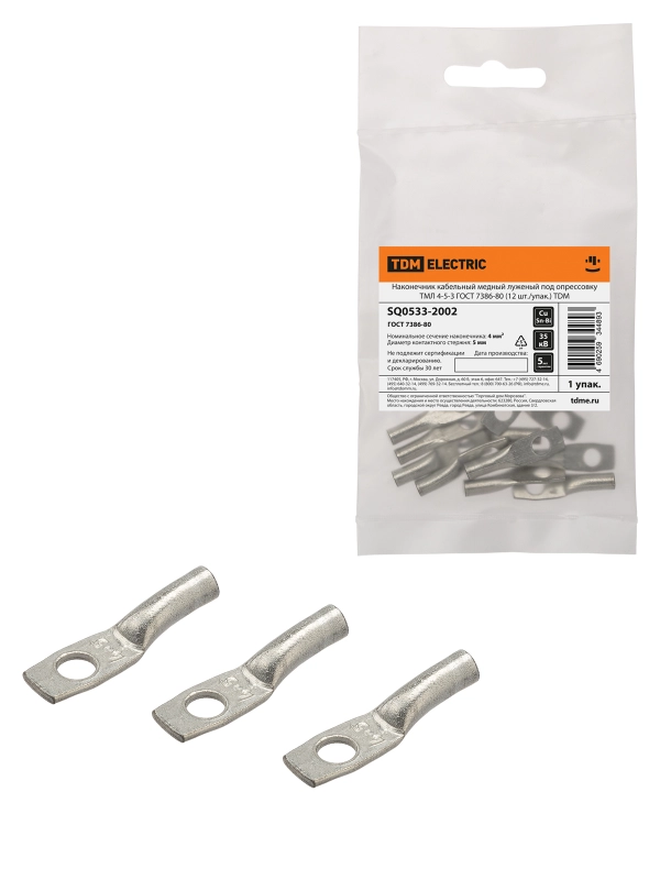 Наконечник кабельный медный луженый под опрессовку ТМЛ 4-5-3 ГОСТ 7386-80 (12 шт./упак.) TDM