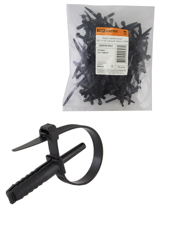 Хомут дюбельный ХД 7х150 черный (50шт) TDM