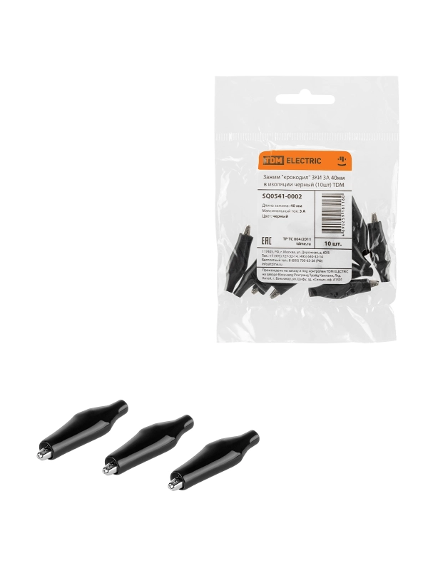 Зажим "крокодил" ЗКИ 3А 40мм в изоляции черный (10шт) TDM