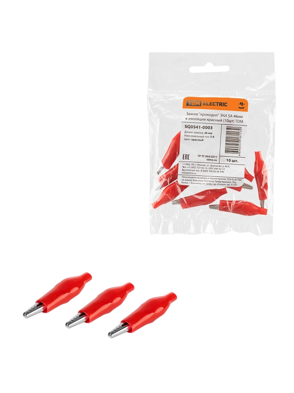 Зажим "крокодил" ЗКИ 5А 46мм в изоляции красный (10шт) TDM