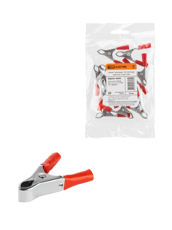 Зажим "крокодил" ЗК 10А 50мм красный (10шт) TDM