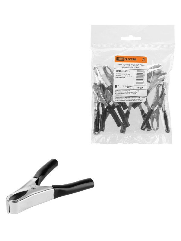 Зажим "крокодил" ЗК 15А 75мм черный (10шт) TDM