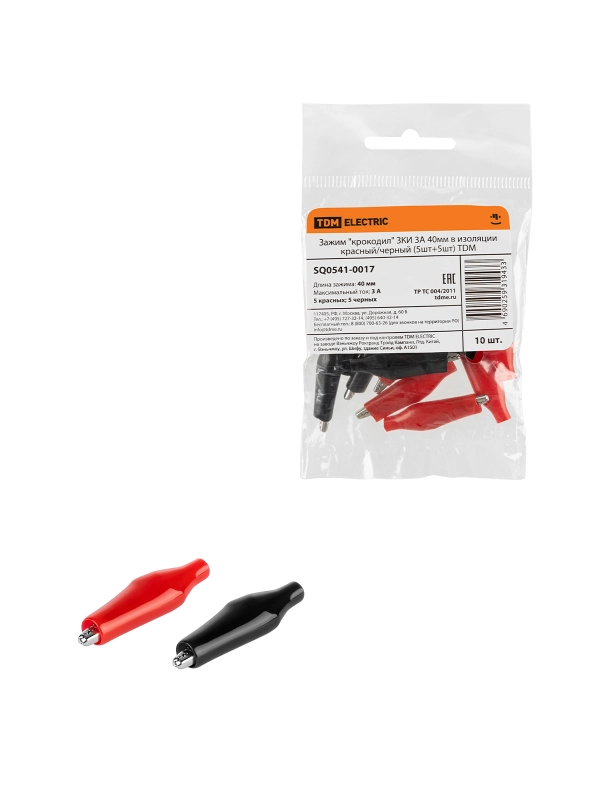 Зажим "крокодил" ЗКИ 3А 40мм в изоляции красный/черный (5шт+5шт) TDM