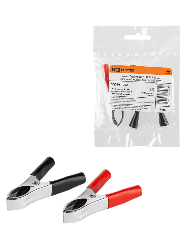 Зажим "крокодил" ЗК 30А 75мм красный/черный (1шт+1шт) TDM