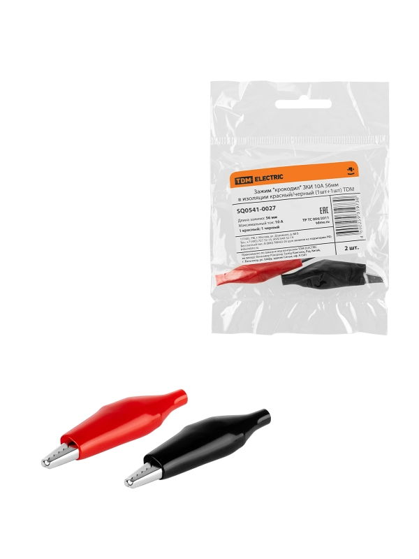 Зажим "крокодил" ЗКИ 10А 56мм в изоляции красный/черный (1шт+1шт) TDM