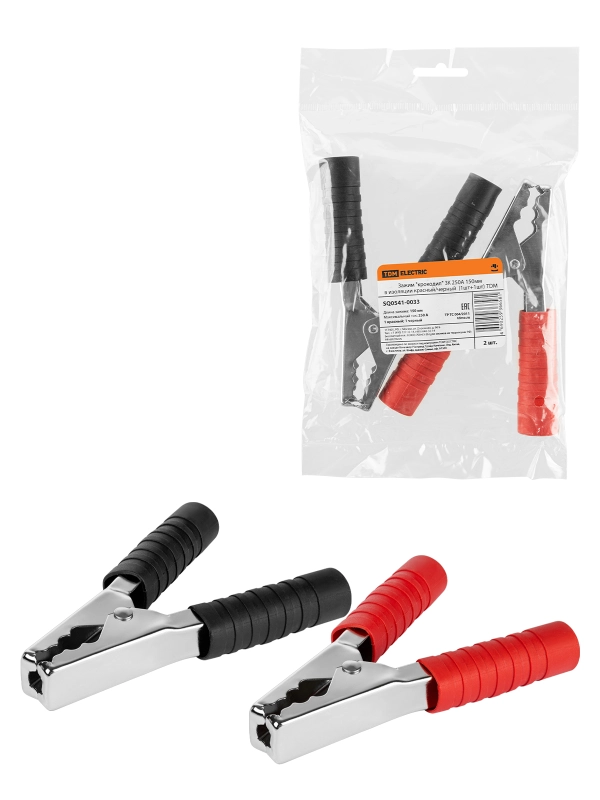 Зажим "крокодил" ЗК 250А 150мм в изоляции красный/черный (1шт+1шт) TDM