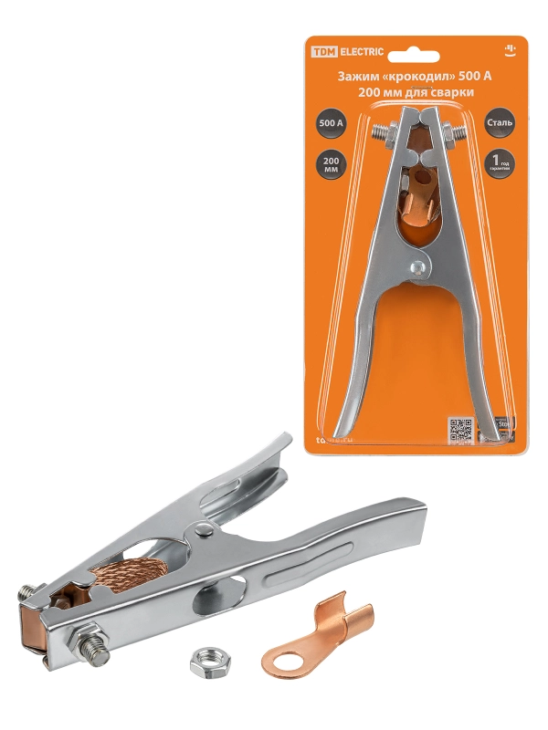 Зажим «крокодил» 500 А 200 мм для сварки TDM