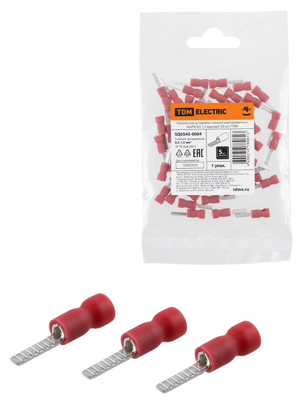 Наконечник штыревой плоский изолированный НШПИ 0,5-1,5 красный (50 шт.) TDM