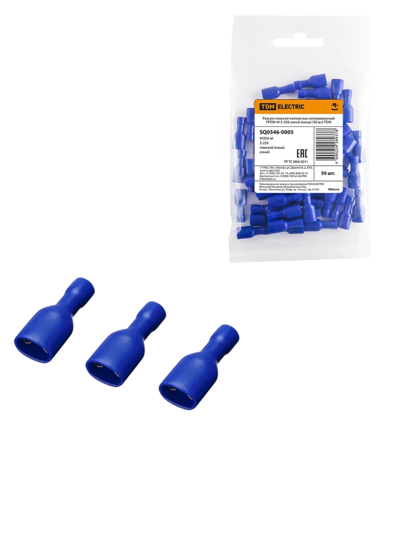 Разъем плоский полностью изолированный РППИ-М 2-250 синий (мама) (50 шт) TDM