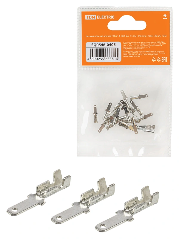 Клемма плоская штекер РП-п 1,5-(2,8) 0,5-1,5 мм? плоский (папа) (20шт) TDM