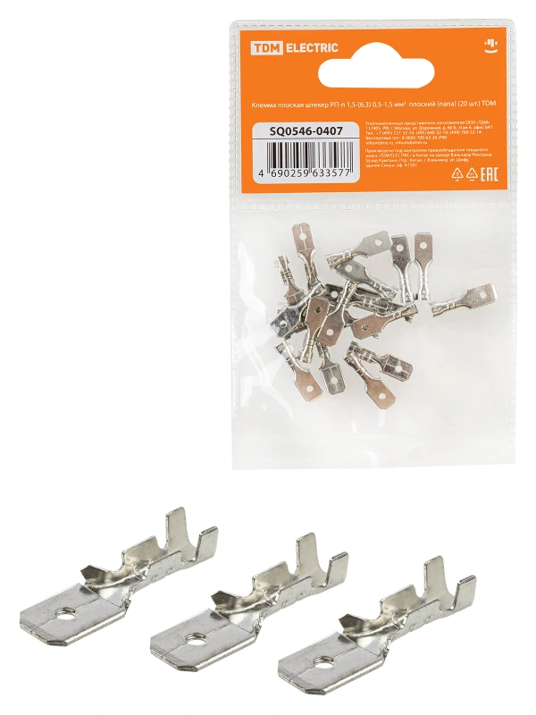 Клемма плоская штекер РП-п 1,5-(6,3) 0,5-1,5 мм? плоский (папа) (20шт) TDM
