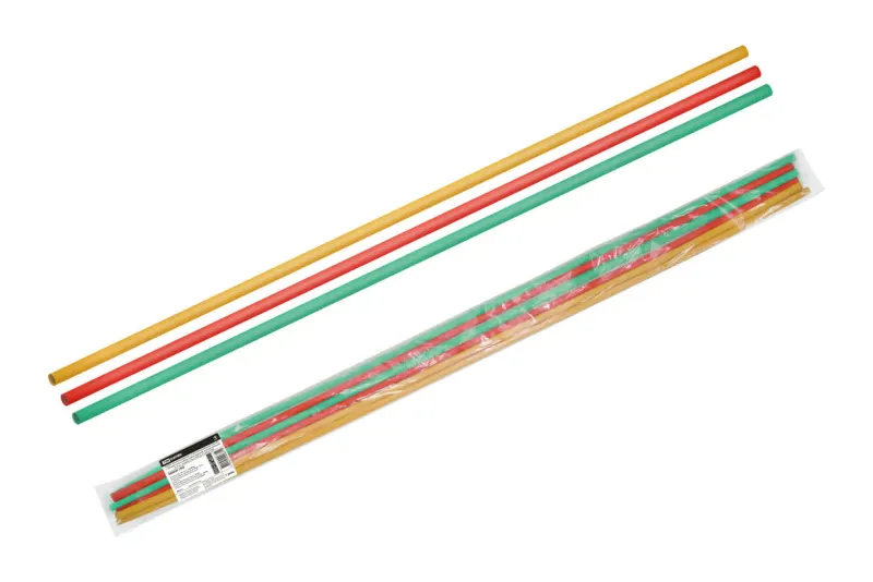 Трубки термоусаживаемые не распространяющие горение, с клеевым слоем, набор 3 цвета (красный, желтый, зеленый) по 3 шт., длиной 1,0 м ТТкНГ(3:1)-2,4/0,8 TDM