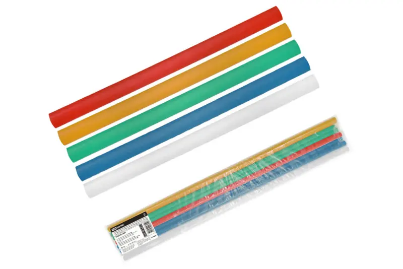 Трубки термоусаживаемые не распространяющие горение, с клеевым слоем, набор 5 цветов (красный, желтый, зеленый, синий, белый) по 2 шт., длиной 1,0 м ТТкНГ(3:1)-12,7/4,3 TDM