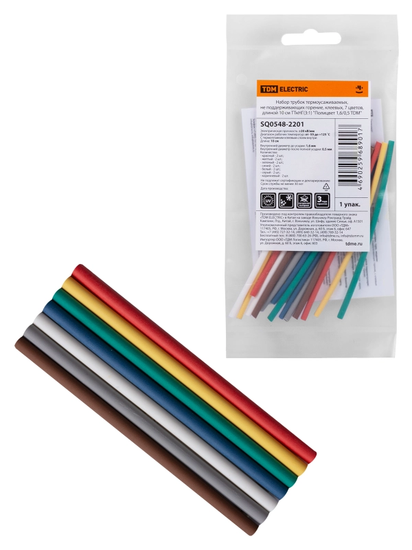 Набор трубок термоусаживаемых, не поддерживающих горение, клеевых, 7 цветов, длиной 10 см ТТкНГ(3:1) "Полицвет 1,6/0,5 TDM"
