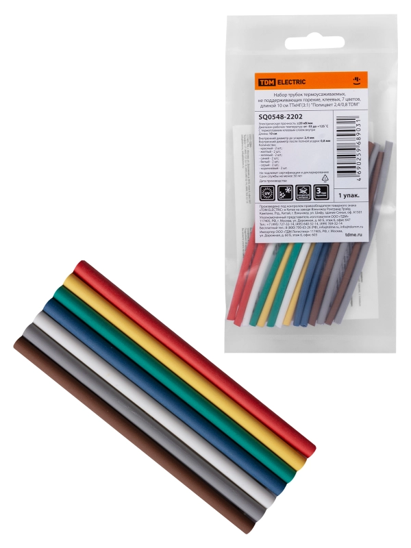 Набор трубок термоусаживаемых, не поддерживающих горение, клеевых, 7 цветов, длиной 10 см ТТкНГ(3:1) "Полицвет 2,4/0,8 TDM"