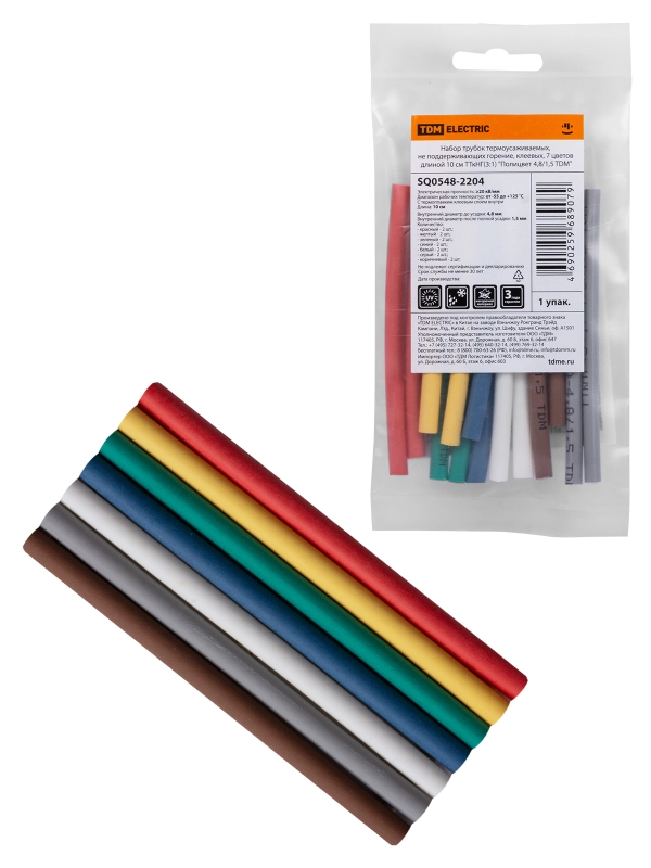 Набор трубок термоусаживаемых, не поддерживающих горение, клеевых, 7 цветов, длиной 10 см ТТкНГ(3:1) "Полицвет 4,8/1,5 TDM"