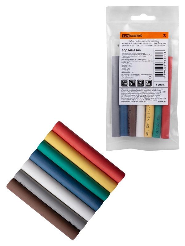 Набор трубок термоусаживаемых, не поддерживающих горение, клеевых, 7 цветов, длиной 10 см ТТкНГ(3:1) "Полицвет 7,9/2,65 TDM"