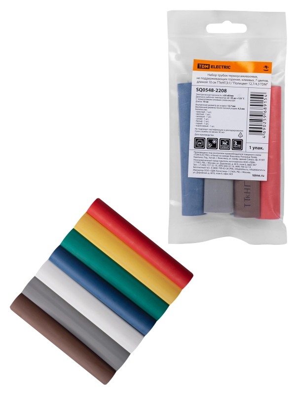 Набор трубок термоусаживаемых, не поддерживающих горение, клеевых, 7 цветов, длиной 10 см ТТкНГ(3:1) "Полицвет 12,7/4,3 TDM"