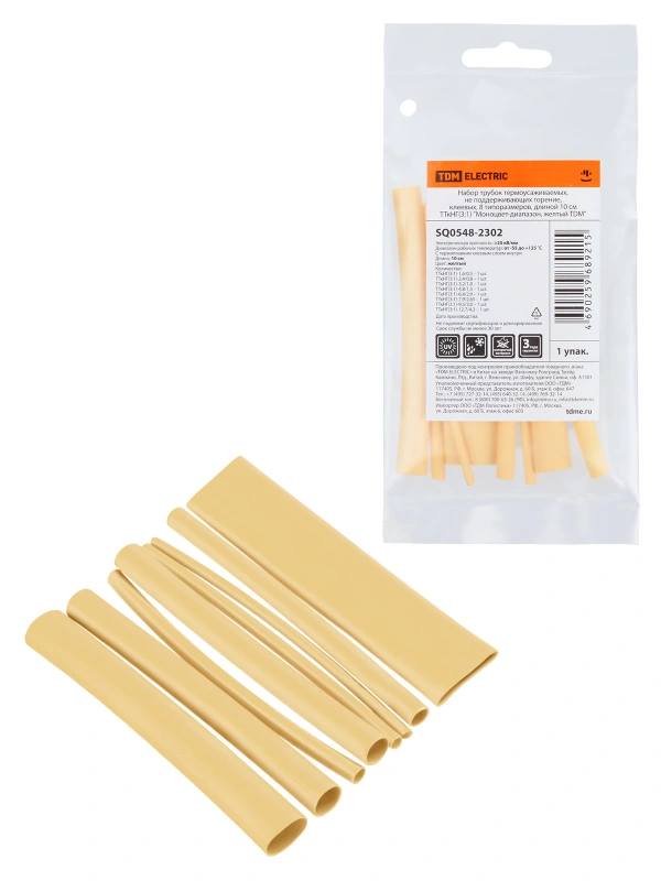 Набор трубок термоусаживаемых, не поддерживающих горение, клеевых, 8 типоразмеров, длиной 10 см ТТкНГ(3:1) "Моноцвет-диапазон, желтый TDM"